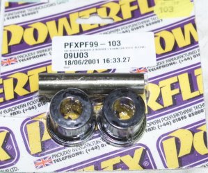 The polyurethane bushes I used are of a universal variety. To be used on an Esprit, they need to be drilled out with a 0.5" drill bit.