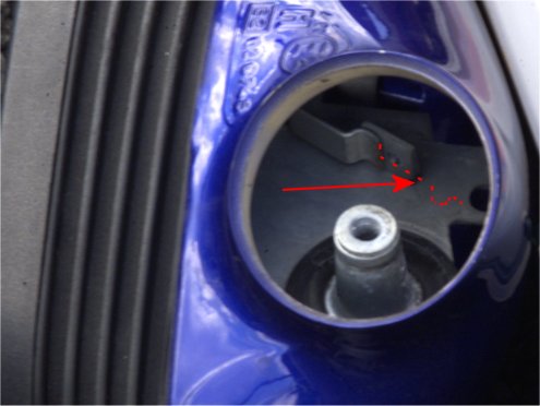 If your mirror no-longer clicks into position, it's because there is a ratchet missing from the mirror head. As you can see, this has happened to my mirror. I've drawn where the piece of spring metal should live.