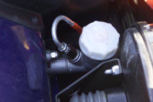 Disconnect the red hose from the master cylinder: