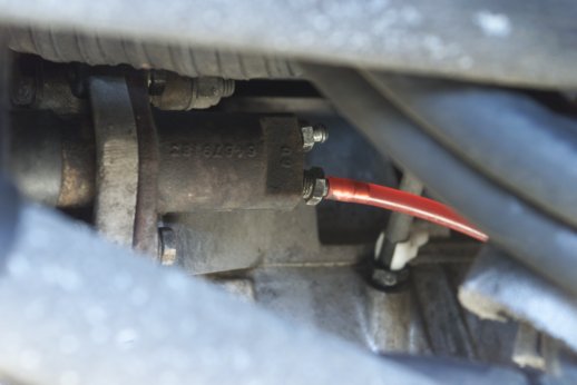 The old red hose should be removed from the slave cylinder and pulled through to the front of the car. Expect to spend about 2 hours replacing the hose.