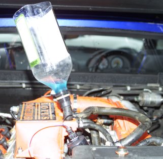 Fill the plastic bottle full with neat anti-freeze. Massage the charge-cooler circuit's hoses until no air can be see bubbling up into the bottle. Remember to keep the bottle topped up with anti-freeze.
