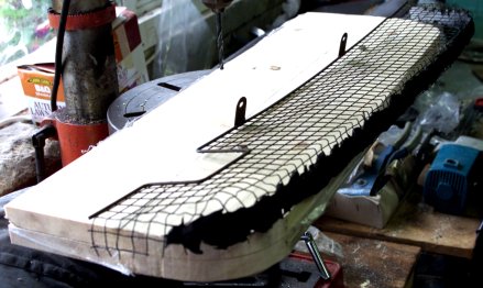 Once the wood is cut, sandwich your new grille material in-between the timber.