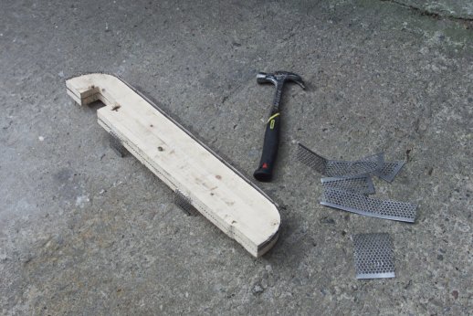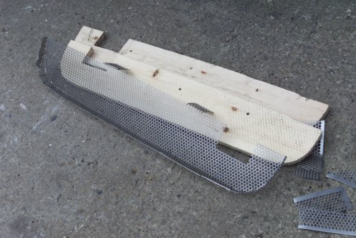 Cut straight slots down to the wooden former and trim the metal to suit.